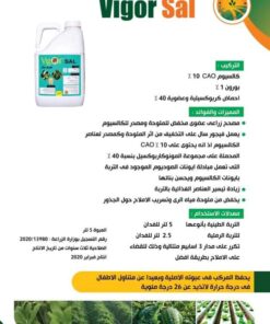 يعمل فيجور سال علي التخفيف من اثر الملوحة وكمصدر لعناصر الكالسيوم اذ انه يحتوي علي 10% CAO المحملة علي مجموعة المونوكاربوكسيل بنسبة 40% التي تعمل مبادلة ايونات الصوديوم الموجوده في التربة بايونات الكالسيوم ويحسن بنائها