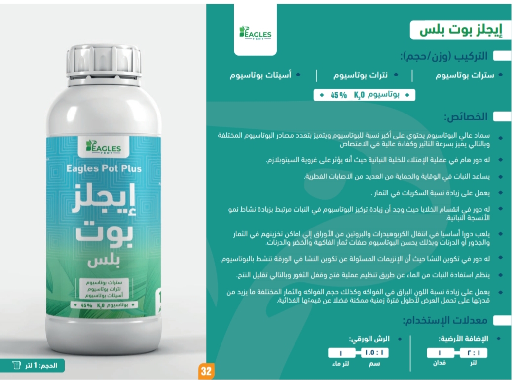 سماد عالي البوتاسيوم يحتوي على أكبر نسبة للبوتاسيوم ويتميز بتعدد مصادر البوتاسيوم المختلفة